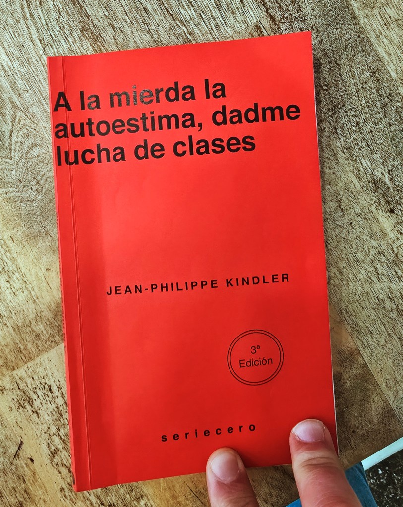 A la mierda la autoestima, dadme lucha de clases (Jean-Philippe Kindler) es un ensayo político y cultural que critica frontalmente el discurso individualista de la “autoayuda”, el coaching motivacional y la obsesión contemporánea con la autoestima como solución a todos los problemas. El libro sostiene que muchas angustias personales no son fallos psicológicos individuales, sino consecuencias materiales de un sistema económico desigual: precariedad laboral, falta de vivienda, explotación, racismo, machismo y clasismo.