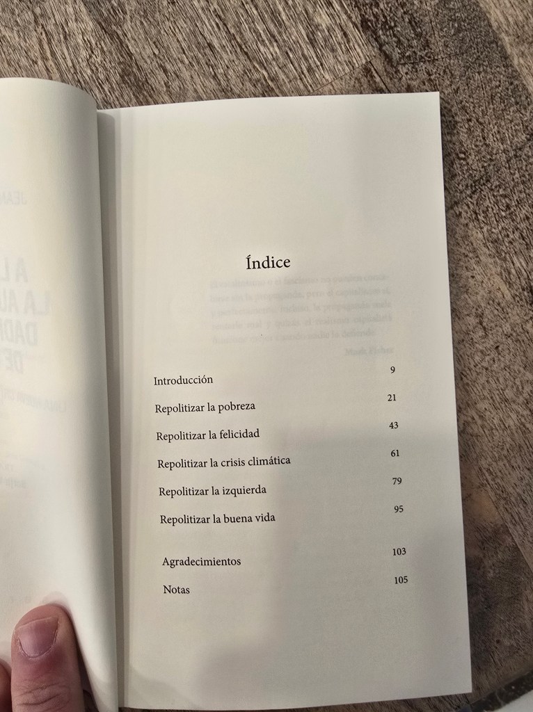 En resumen, es un libro breve, directo y muy accesible (además de aportar un montón de referencias), pensado para hacer reflexión. Destaca por su tono directo, la conexión entre vida cotidiana / estructura económica y su crítica al discurso neoliberal del bienestar.